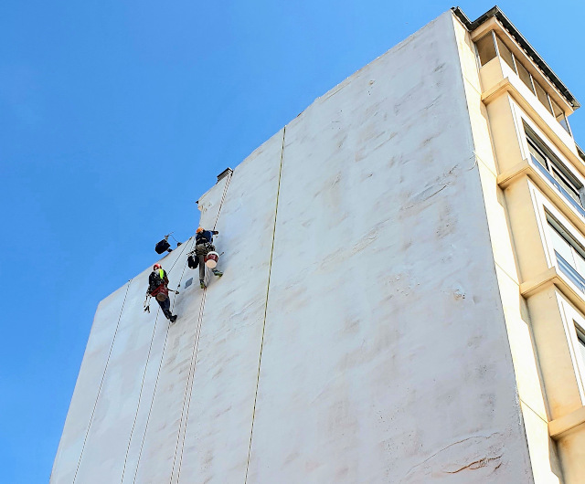 Realizamos todo tipo de intervenciones en altura y lugares de difícil acceso mediante técnicas de posicionamiento por cuerdas. Esto nos permite ejecutar rehabilitaciones de fachadas, limpieza de cristales, instalación de sistemas antiaves y reparaciones estructurales de forma rápida, segura y sin necesidad de andamios, reduciendo costes y molestias.