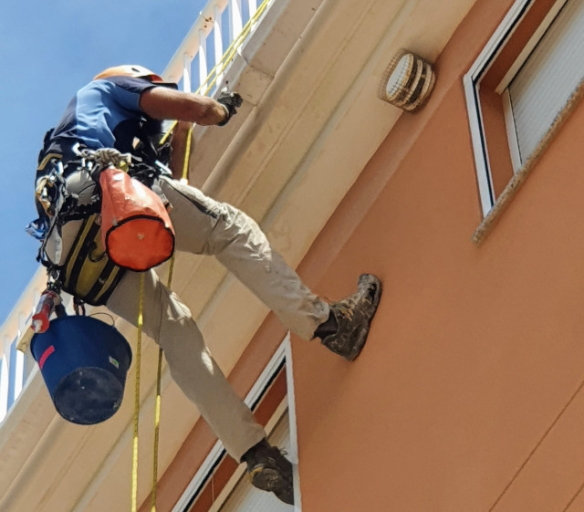 Realizamos todo tipo de intervenciones en altura y lugares de difícil acceso mediante técnicas de posicionamiento por cuerdas. Esto nos permite ejecutar rehabilitaciones de fachadas, limpieza de cristales, instalación de sistemas antiaves y reparaciones estructurales de forma rápida, segura y sin necesidad de andamios, reduciendo costes y molestias.